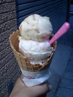 が、今日は微妙に時間がなかったのでスモールサイズで妥協。次はレギュラーサイズで挑戦です。店員さんに止められようともコーンでトリプルが身上。だって甘いもの大好きだもの。